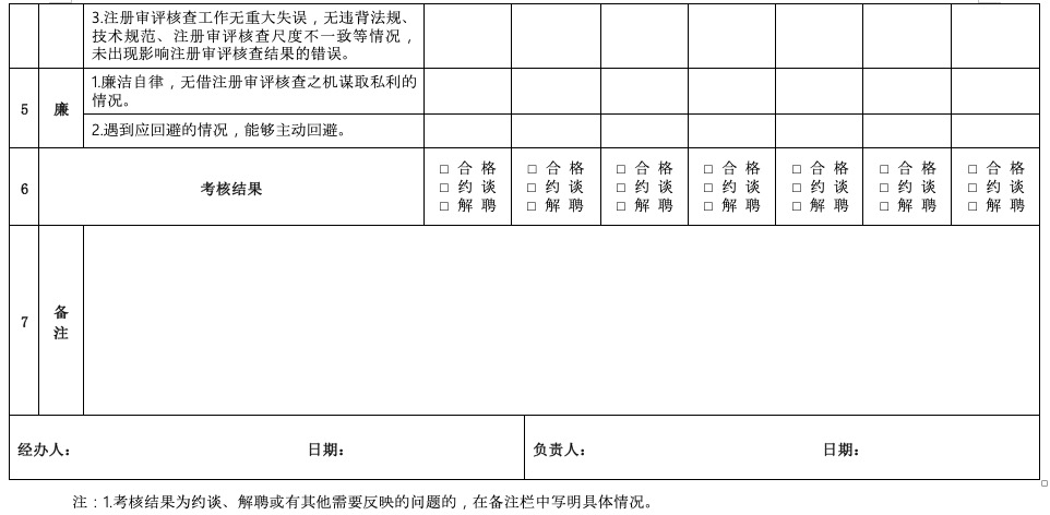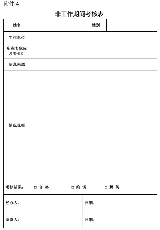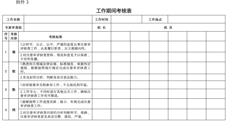第十九條 食審中心通過工作期間考核表(附件3)對專家在參與注冊審評核查工作期間的履職情況進行考核;在專家未參與注冊審評核查工作期間,食審中心發現的其注冊審評核查意見有誤、違規違紀等情況,通過非工作期間考核表(附件4)進行考核。