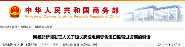 過渡期實施以來,跨境電商零售進口平穩發展,對于引導企業積極適應規范的監管要求、地方不斷創新監管服務等發揮了重要作用。同時,相關部門也在從有利于促進行業健康發展、有利于維護消費者利益和安全健康的角度研究優化監管安排。為穩妥推進跨境電商零售進口監管模式過渡,經商有關部門同意,上述過渡期進一步延長至2017年底。