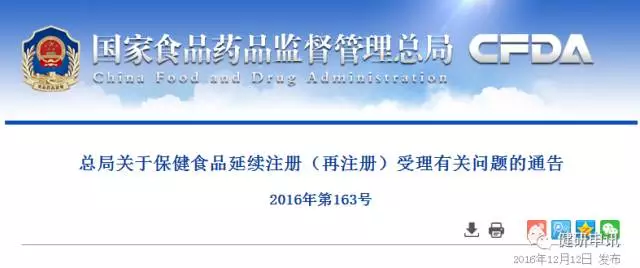 為加強和規范保健食品延續注冊(再注冊)管理,保障《保健食品注冊與備案管理辦法》平穩實施,經研究,現就保健食品延續注冊(再注冊)申請受理等有關事項通告如下: