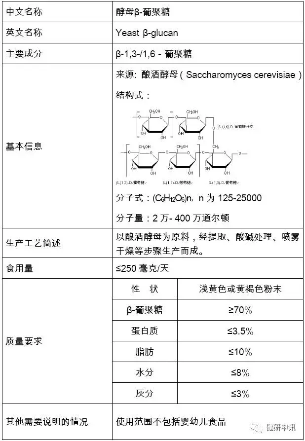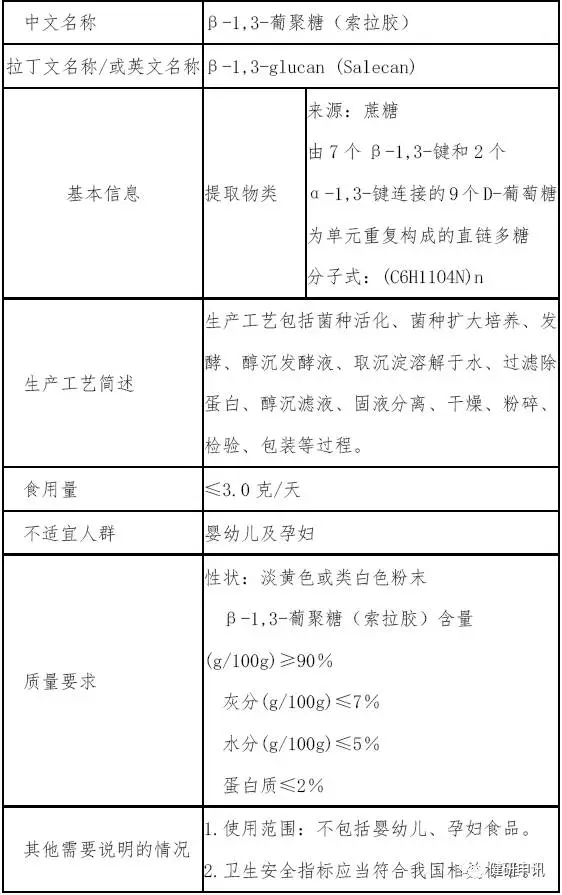 2010年第9號公告批準酵母β-葡聚糖為新食品原料,公告內容: