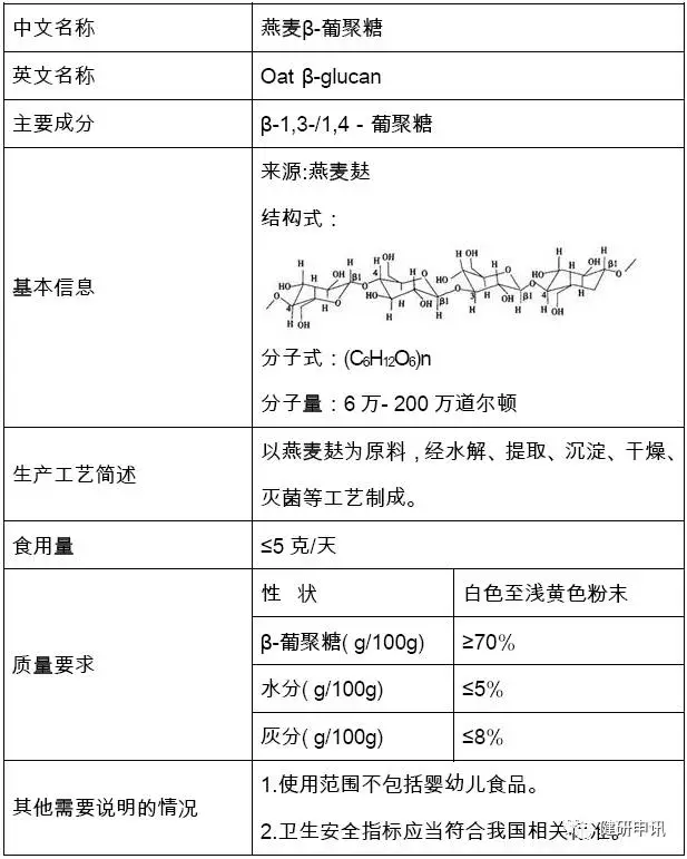 2014年第20號公告批準燕麥β-葡聚糖為新食品原料,公告內容: