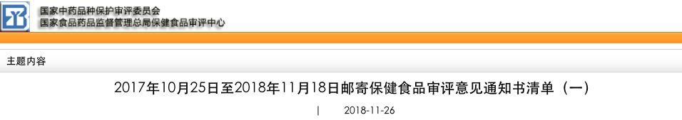 今日快訊,中保委官網統計公布了從2017年10月25日至2018年11月18日已郵寄保健食品審評意見通知書清單,共計3903個。