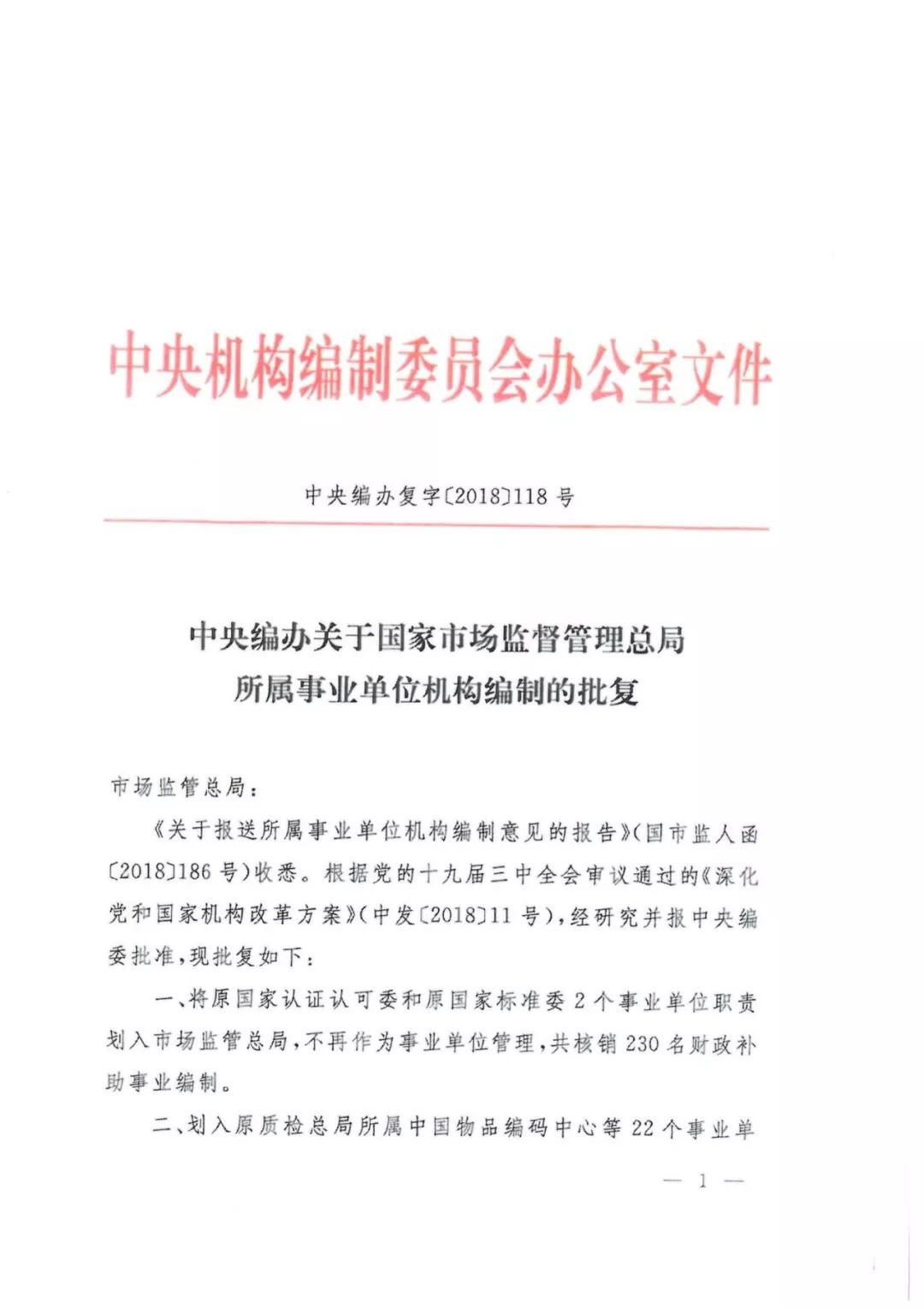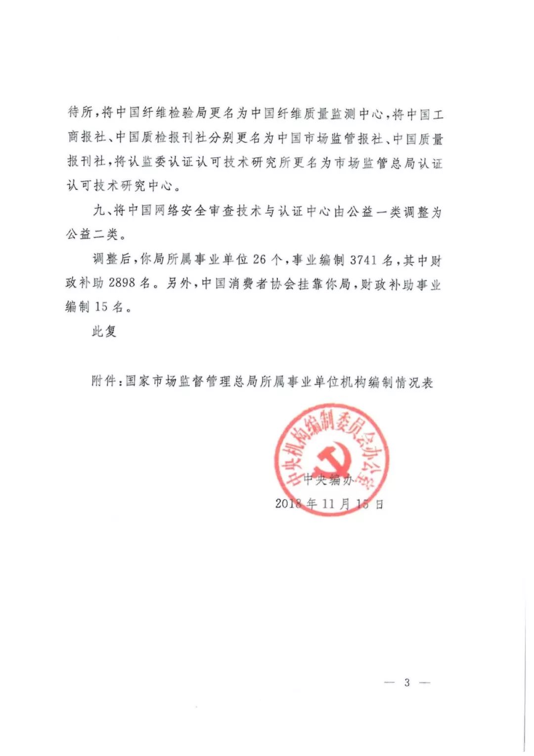 其實(shí)在2018年11月15日中央機(jī)構(gòu)編制委員會(huì)辦公室印發(fā)的文件中第三條明確批復(fù):