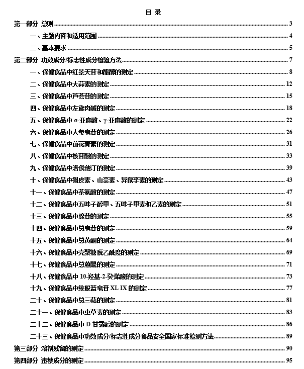 9. 違禁成分的檢測作為相應保健功能類別產品的功能試驗樣品注冊檢驗要求,應當符合本指導原則第四部分的規定。