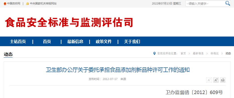 為做好食品添加劑新品種安全性審查和許可工作,根據《食品安全法》及其實施條例、中央編辦《關于印發〈國家食品安全風險評估中心組建方案〉的通知》(中央編辦發〔2011〕21號)規定,現決定委托你們承擔食品添加劑新品種許可的技術審查等工作。具體事宜通知如下: